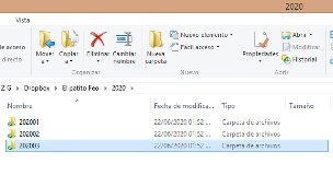 Período de generación. Archiva en tu disco duro una carpeta por año, y a su vez, por mes, ejemplo: